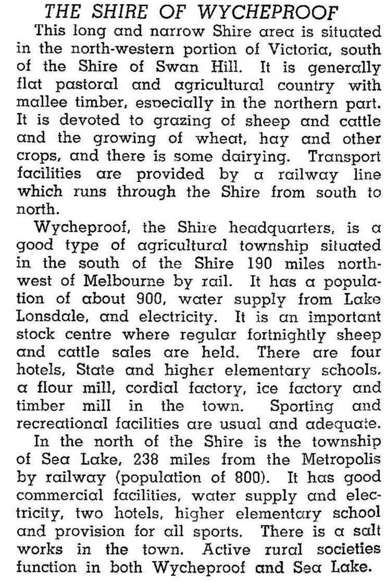 In 1946 the shire was described in the Australian blue book: